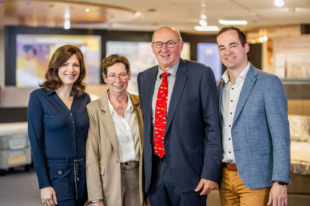 Inmiddels is Slaapspecialist Oldenzaal uitgegroeid tot een begrip in de regio en tevens een heus familiebedrijf. Ik word namelijk vergezeld door mijn vrouw Elly, zoon Robin en dochter Chantal die gaandeweg zonder enig aandringen instapten. “Het belangrijkste is dat iedereen doet waar hij of zij blij van wordt. Dat is onze kracht.” zei en zegt mijn vrouw Elly altijd.